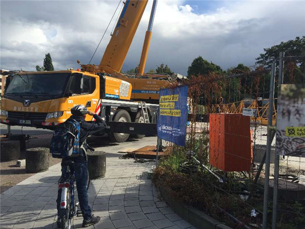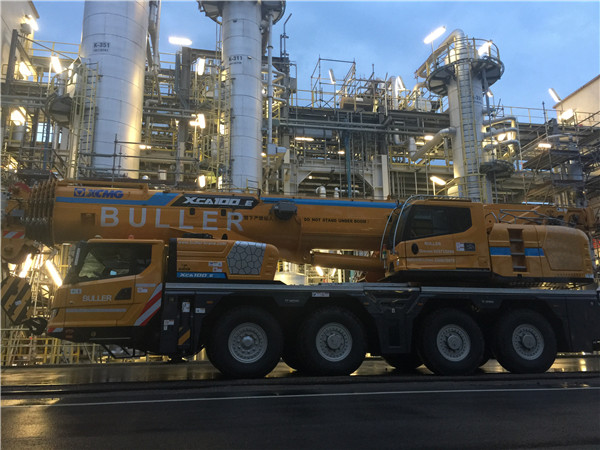 驶进德国鲁尔的徐工XCA100E全地面起重机