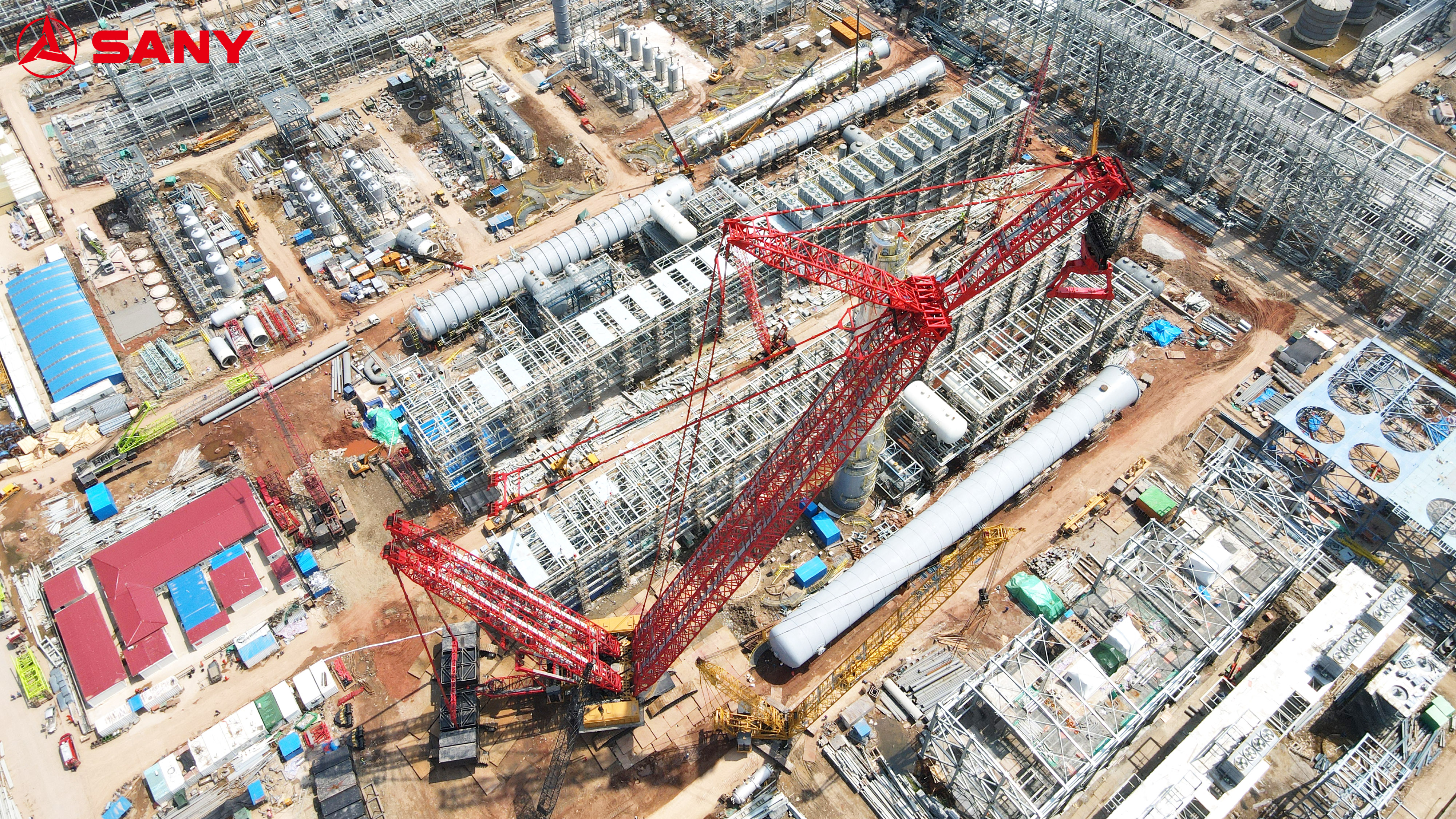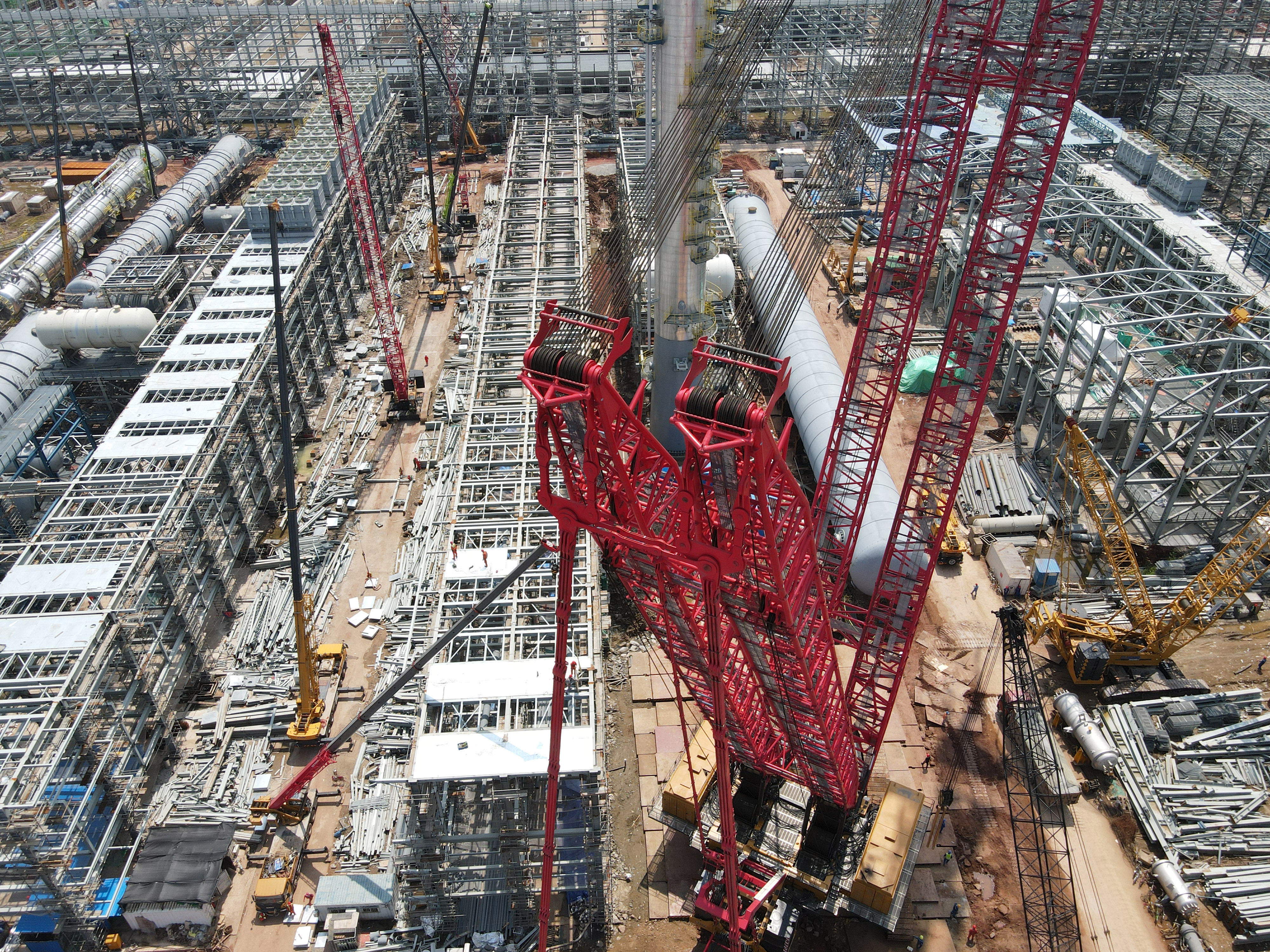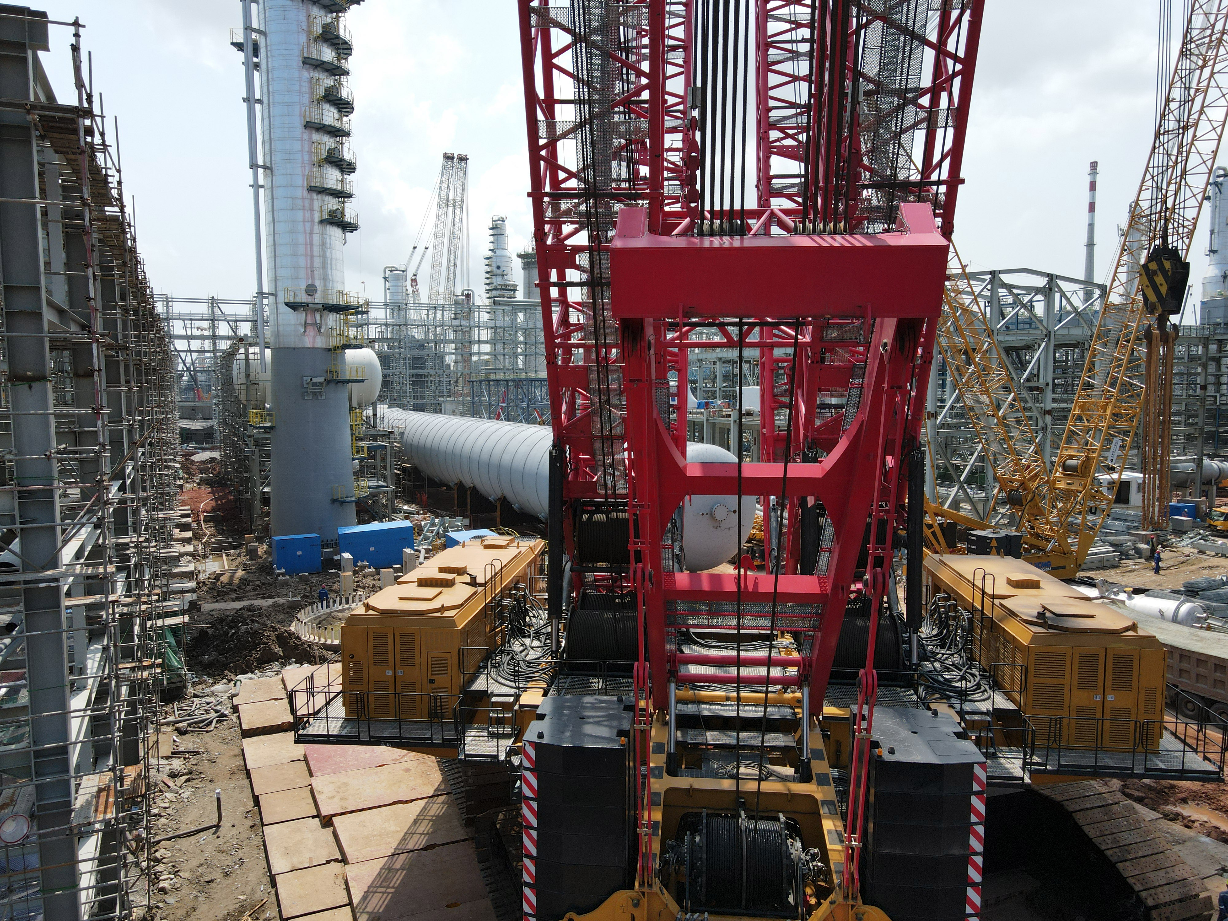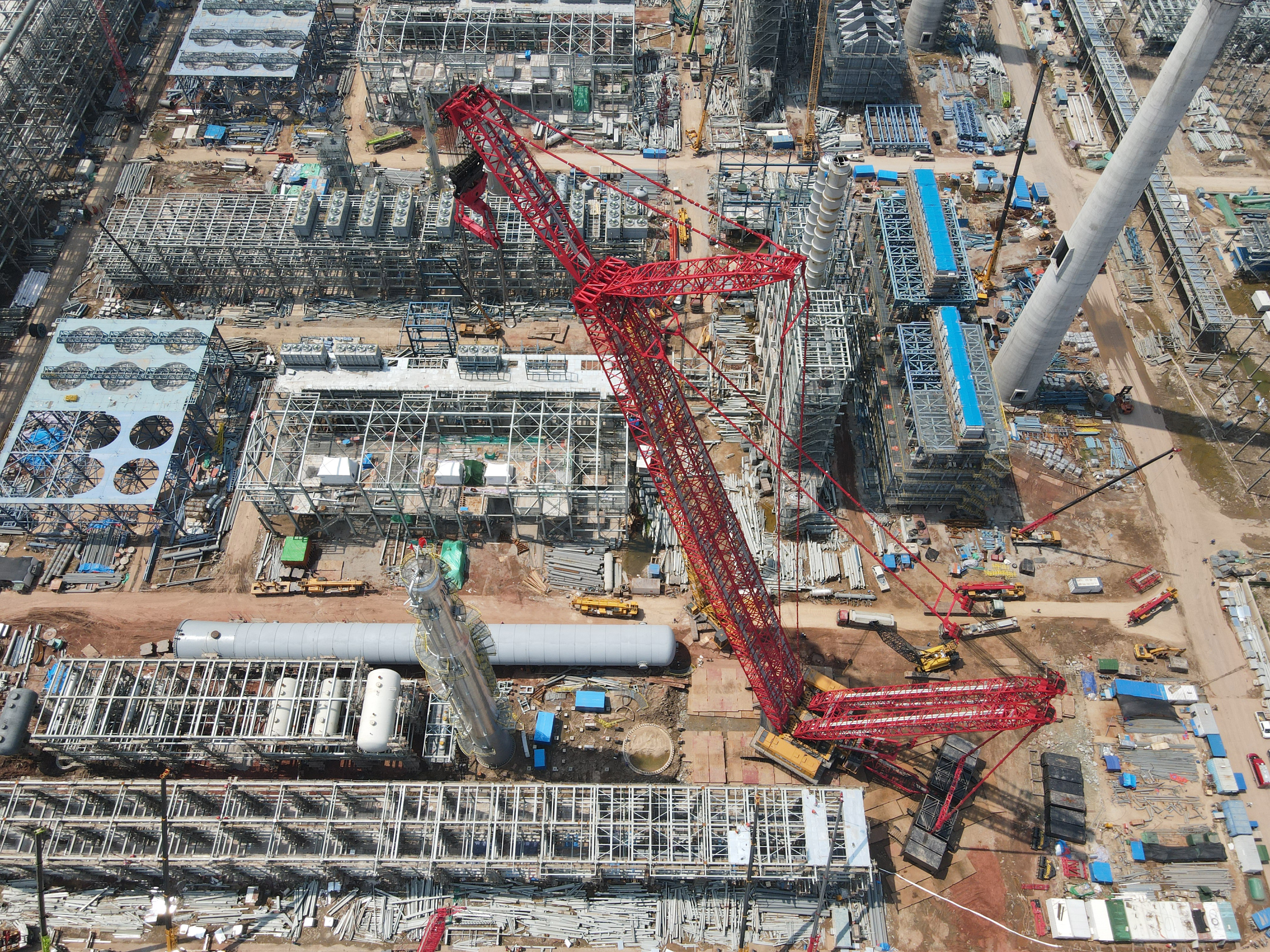 SCC40000A盛虹项目吊装首秀!623吨脱丙烷塔就位
