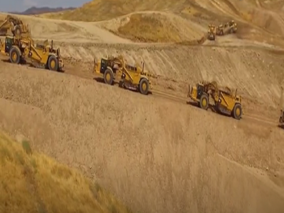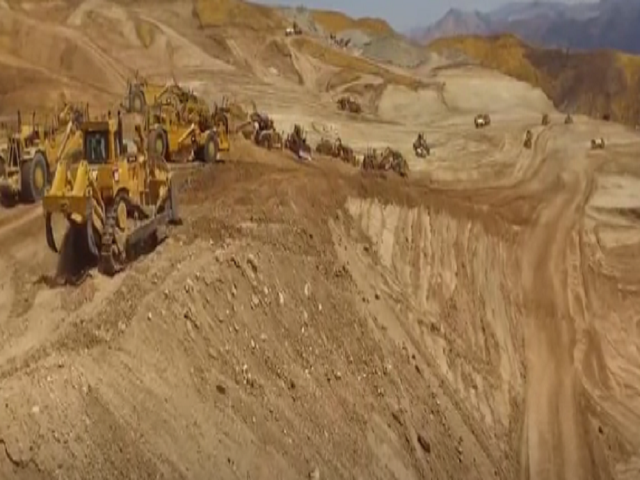 大型工程开工现场,近百台铲运机 推土机正在紧张施工中