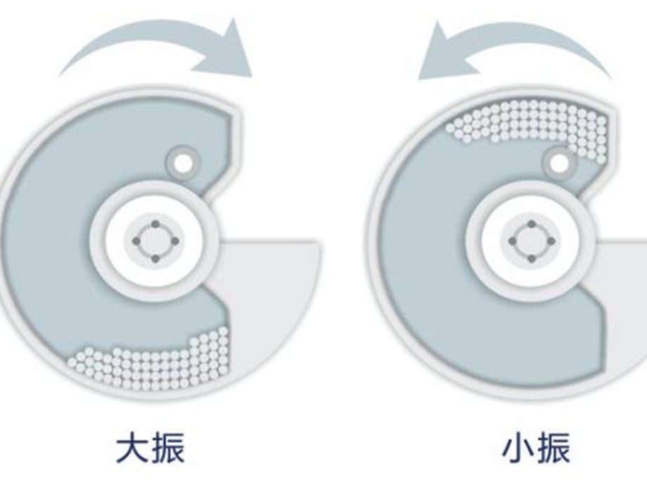 流球式结构,特制偏心腔体,内部装有钢球和抗磨剂,取代甩块激振器的偏心块,通过钢球的运动位移形成大小振;